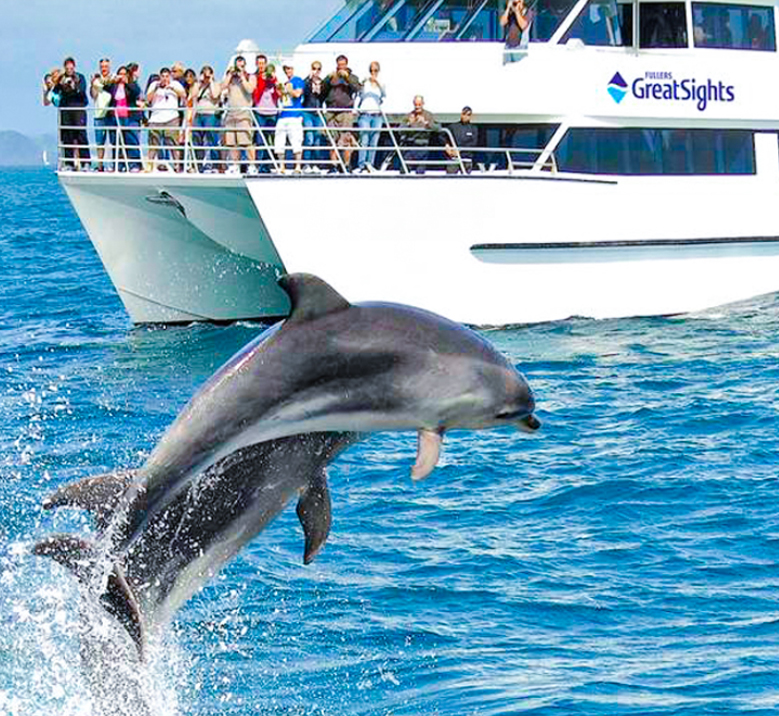Du thuyền Dolphin Seeker sẽ đưa du khách đi qua ngọn hải đăng mũi Brett. Ngọn hải đăng này được xây dựng từ những năm 1910, cao 15m và có tầm quét sáng 145m – Cape Brett Lighthouse.